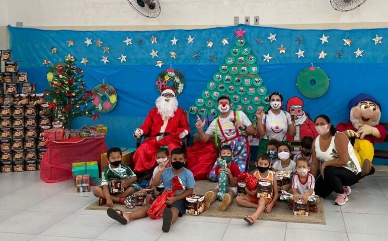 Nesta terça-feira (07) o projeto Colo de Maria fez a festa de Natal para 460 crianças nas escolas municipais Lourival Pires Fraga e Príncipe Encantado. A festa foi marcada com a distribuição de panetones, refrigerante, brinquedos e claro, com a presença da Missão Riso com músicas e dinâmicas.