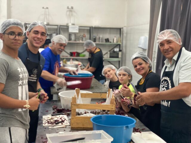O próprio Cristo nos ensina que “Há maior alegria em dar do que receber” (Atos 20,35). Humildade e caridade é o que não falta para esse grupo de voluntários da Missão Guadalupe. Sempre com muita alegria eles se reúnem na Casa da Cidadania em Campinas para preparar marmitas que serão doadas para pessoas em situação de rua. A vontade em ajudar o próximo é tão contagiante, que até as crianças se envolvem nas pequenas tarefas do grupo, mas tudo sob a supervisão de um adulto, é claro! Os encontros acontecem todas sextas-feiras de cada mês. Na última sexta-feira, 15/09, foram distribuídas 160 marmitas a moradores de rua, os alimentos são preparados por meio de doações. O grupo criado em 2021, é coordenado pela Inês e o Benê. “ Nesse projeto aprendemos que a maior alegria é doar”.
