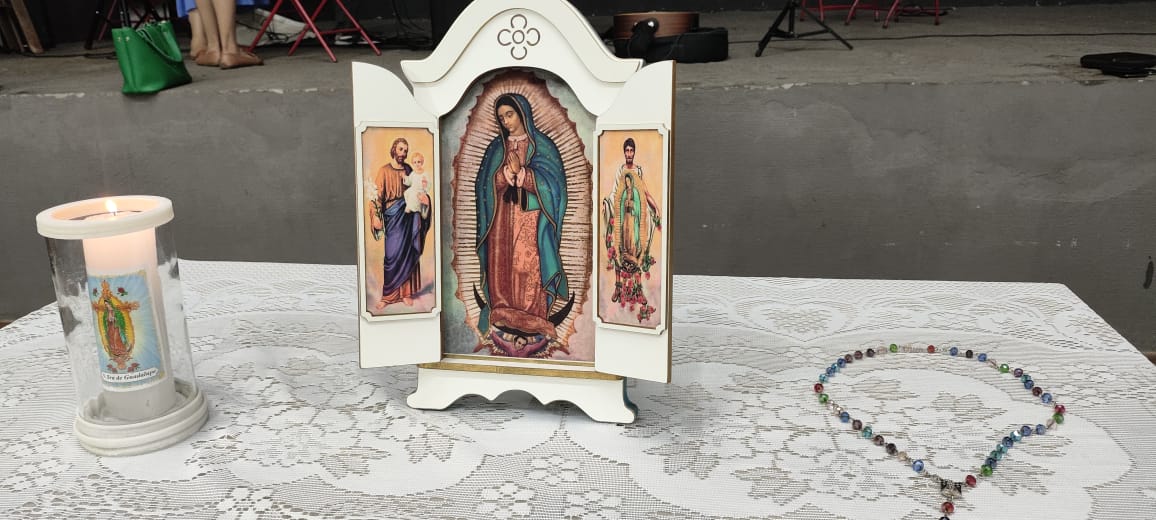 Ex frequentadora de Igrejas evangélicas Valéria de Lima conta que conheceu a Missão Guadalupe em 2023 por meio dos acampamentos. “ Há algum tempo eu não tinha nenhum conhecimento do que era a igreja católica, tinha entrado umas duas ou três vezes em algumas igrejas. Em fevereiro de 2023, ouvi falar do acampamento da Missão Guadalupe. Não me interessei em momento algum em participar, mas meu esposo foi. E voltou outra pessoa. Fiquei muito desconfiada, pensei inúmeras coisas e então surgiu o 4º Acampamento de Casais da Missão Guadalupe. Neste, tive grande incentivo de várias pessoas do grupo de oração que eu estava frequentando na igreja Santíssimo Sacramento”. Valéria resolveu fazer o acampamento por curiosidade e lá segundo ela, aconteceu um grande encontro com Nossa Senhora de Guadalupe. “Parecia que eu era cega e tinha começado a enxergar naquele dia. Tudo começou a girar e percebi que eu não ia sair do acampamento a mesma pessoa que tinha entrado, fui acolhida pela Mãe e me apaixonei por Jesus e Maria” afirma.