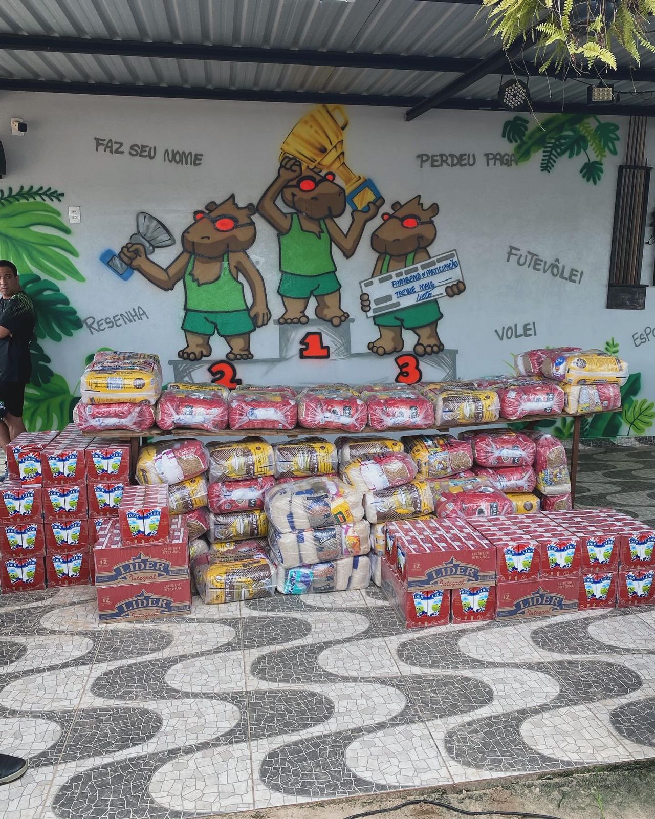 A casa de Missão Guadalupe recebeu a doação de 70 cestas básicas e 40 caixas de leite da Represa Arena Beach, por meio de ação solidária realizada pelo casal Neto e Tainá Bressan proprietários da empresa de esportes na areia.